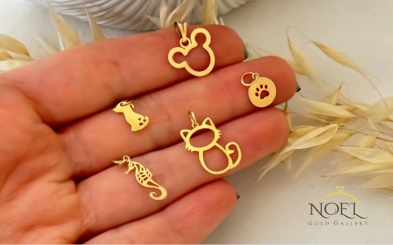 گردنبندها و آویزهای طلا با طرح حیوانات از محبوب‌ترین محصولات این کالکشن محسوب می‌شوند. از پروانه و پرنده گرفته تا فیل، گربه، سگ، ماهی یا حتی حیوانات اسطوره‌ای، هر طرح معنای خاصی را منتقل می‌کند. این آویزها می‌توانند به‌صورت تک‌پلاک ساده یا طراحی‌های پیچیده‌تر همراه با نگین، مروارید و میناکاری ساخته شوند. در کارگاه نو ال گلد گالری امکان ساخت گردنبندهای سفارشی با هر طرح پیشنهادی مشتری وجود دارد؛ حتی طرح حیوان خانگی یا تصویر خاصی که برای فرد ارزش احساسی دارد. یکی از مزیت‌های این گردنبندها، قابلیت استفاده در استایل‌های مختلف است؛ از مدل‌های ظریف و مینیمال برای استفاده روزمره گرفته تا گردنبندهای شاخص و سنگین برای مناسبت‌های رسمی و خاص. تمامی قفل‌ها و زنجیرها با دقت انتخاب می‌شوند تا علاوه بر استحکام، راحتی در استفاده نیز فراهم باشد. ترکیب هنر و معنا در این آویزها باعث می‌شود که گردنبندهای طرح حیوانات به هدایایی ماندگار و ارزشمند تبدیل شوند.