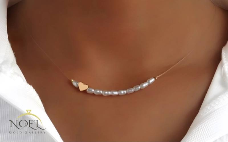 گردنبند طلا با ترکیب مروارید و بند نامرئی