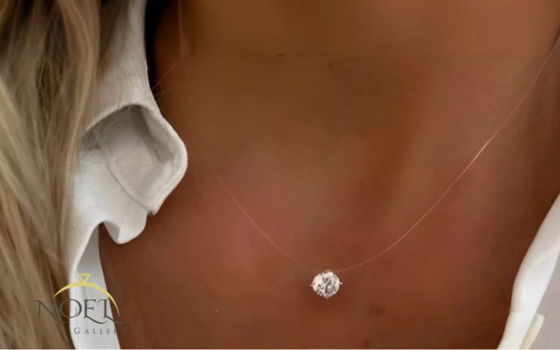 این مدل یکی از پرطرفدارترین انواع گردنبند نامرئی است. تنها یک نگین الماس، برلیان یا زیرکنیا روی بند قرار میگیرد و درخششی ساده اما فوقالعاده شیک ایجاد میکند. این سبک برای کسانی مناسب است که عاشق ظرافت و مینیمالیسم هستند.