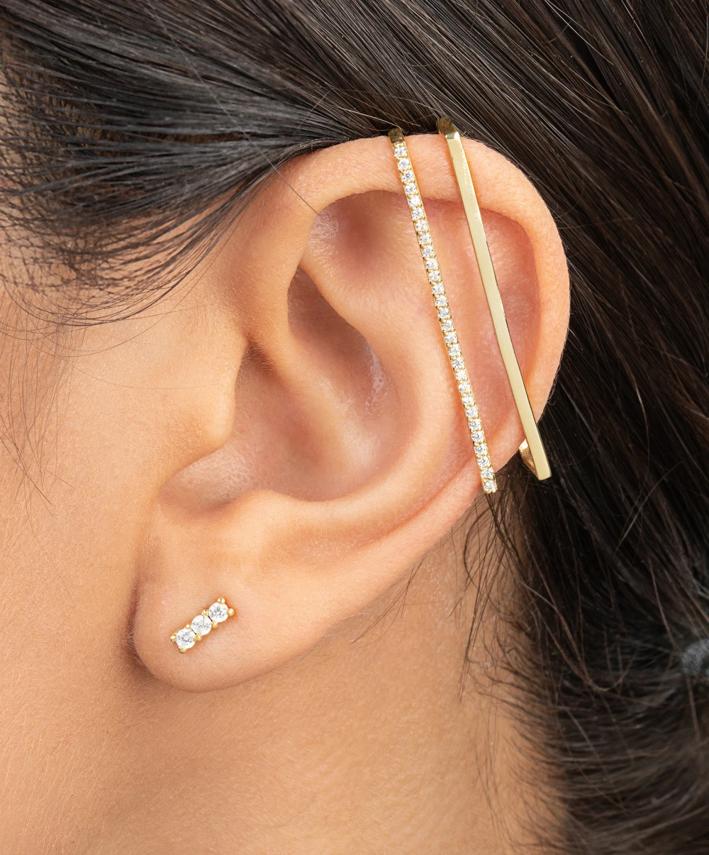 اگر بهدنبال یک گوشواره طلا ظریف اما در عین حال چشمگیر هستید، گوشواره سه نگین خطی انتخابی ایدهآل برای استفاده روزمره و حتی استایلهای نیمهمجلسی محسوب میشود. این مدل گوشواره با طراحی خطی و مینیمال خود، جلوهای شیک و مدرن روی لاله گوش ایجاد میکند و بهراحتی با انواع استایلها قابل ست شدن است.