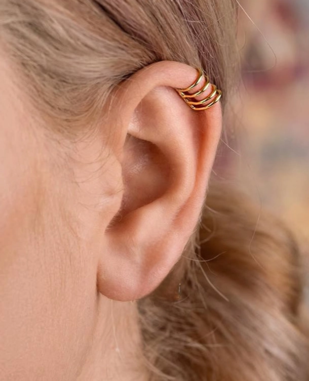 این مدل ایرکاف از طلای ۱۸ عیار ساخته شده و طراحی مارپیچی چهارحلقه‌ای آن باعث می‌شود به‌صورت کاملاً فیکس بدون نیاز به سوراخ کردن گوش،روی لبه‌ی بالایی گوش قرار بگیرد، بدون آن‌که احساس سنگینی یا ناراحتی ایجاد کند.