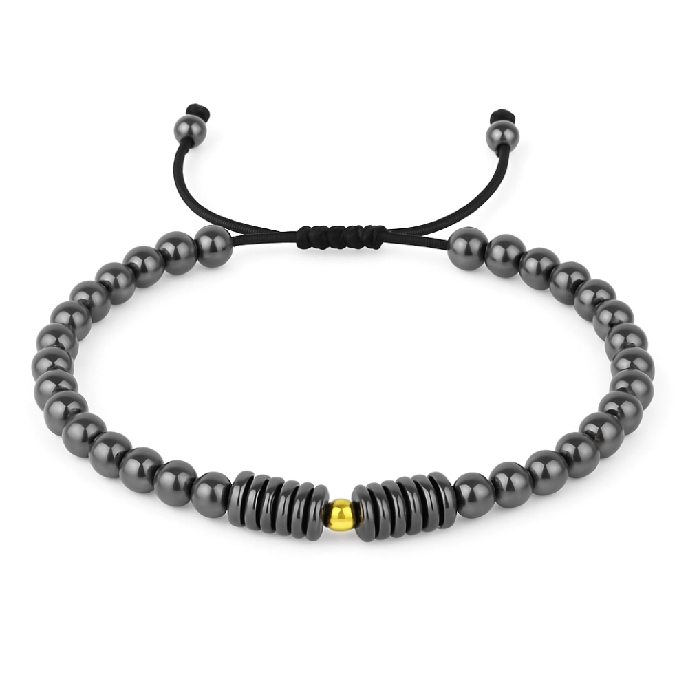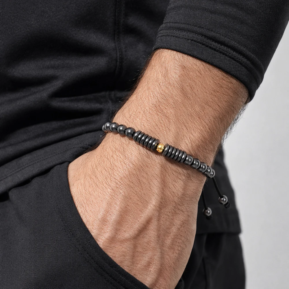دستبند تک گوی طلا با مهرههای سنگ حدید کد 100130 یکی از زیورآلات خاص و شیک برای آقایان است که ترکیبی از اصالت و مدرنیته را در کنار هم قرار میدهد. این دستبند از مهرههای سنگ حدید براق و باکیفیت ساخته شده که جلوهای درخشان و متفاوت به دست شما میدهد. نقطهی تمایز این محصول وجود یک گوی طلا در مرکز دستبند است که علاوه بر ارزش مادی، زیبایی و جذابیت آن را چند برابر کرده و به عنوان نقطه کانونی طراحی عمل میکند.