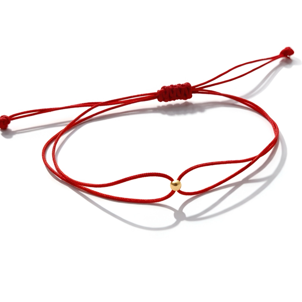 در مرکز این دستبند، یک گوی طلای ظریف از جنس طلای ۱۸ عیار قرار گرفته که جلوهای مینیمال و درخشان به طراحی آن میبخشد. ترکیب بند قرمز با گوی طلا باعث شده این مدل، هم بهتنهایی و هم در کنار سایر دستبندها، جلوهای شیک و چشمنواز روی دست داشته باشد.