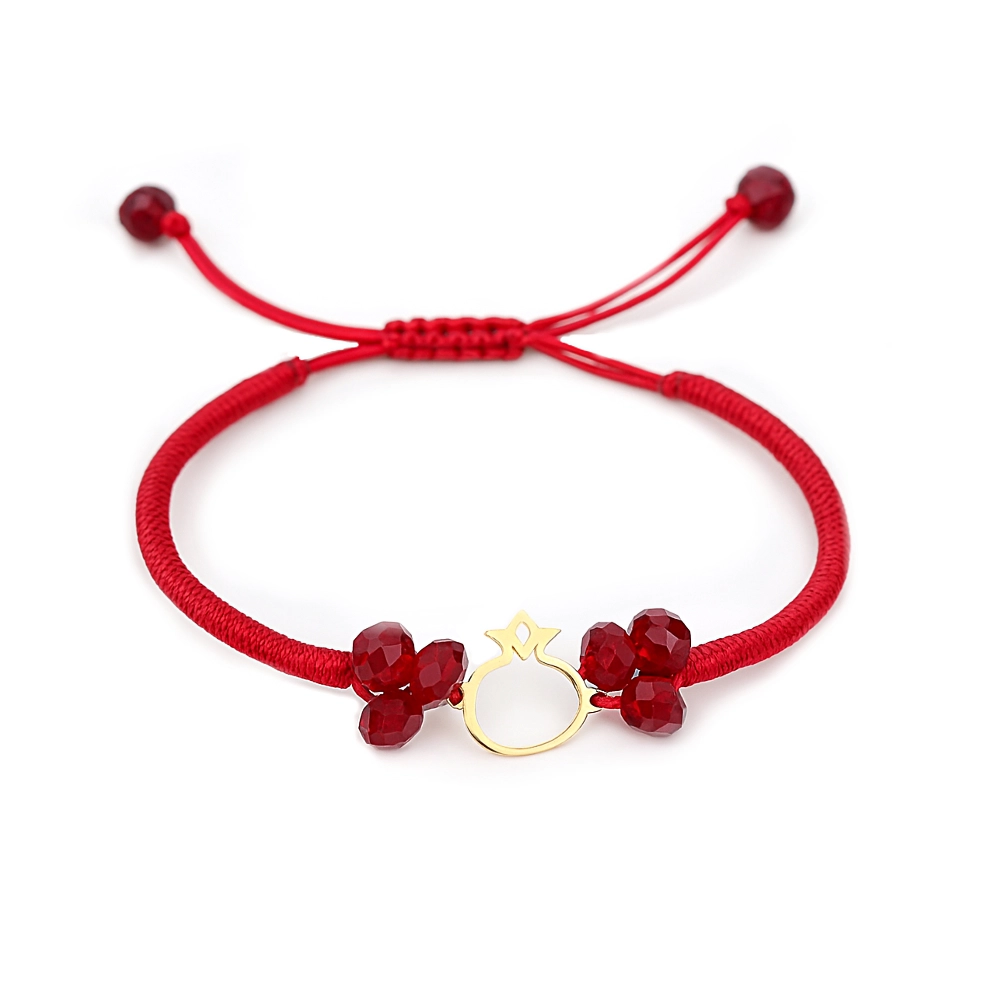 دستبند پلاک انار نو ال گلد گالری ترکیبی ایدهآل از نمادگرایی و ظرافت است که مخصوص شب یلدا طراحی شده است. پلاک مینیمالِ انار از طلای ۱۸ عیار ساخته شده و دو طرف آن با مهرههای قرمزِ تراشخورده (شبیه دونههای انار) تزئین شده است تا حال و هوای یلدایی را تقویت کند. بند این دستبند از نخ قرمزِ رنگ ساخته شده و قفل آن کشویی است؛ بنابراین بهراحتی قابل سایز و تغییر اندازه بوده و برای هر مچ مناسبت دارد.