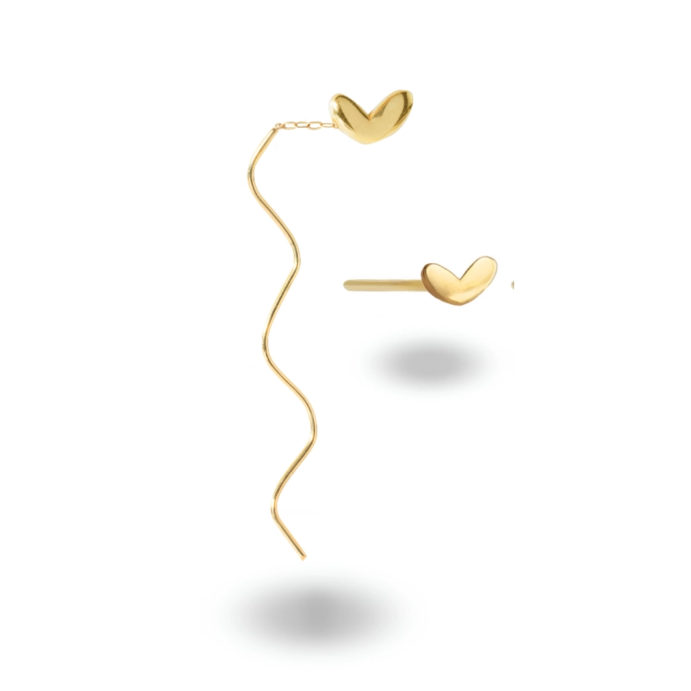 یک لنگه بخیهای با طراحی قلب بادکنکی و زنجیر ظریف یک سانتی که به بخش مارپیچ متصل میشود. طول قسمت مارپیچ بخیهای ۵ سانت است و با حرکت سر و تغییر حالت بدن، انعطاف و تاب زیبایی به خود میگیرد. اندازه قلب در این مدل ۷ میلیمتر است.