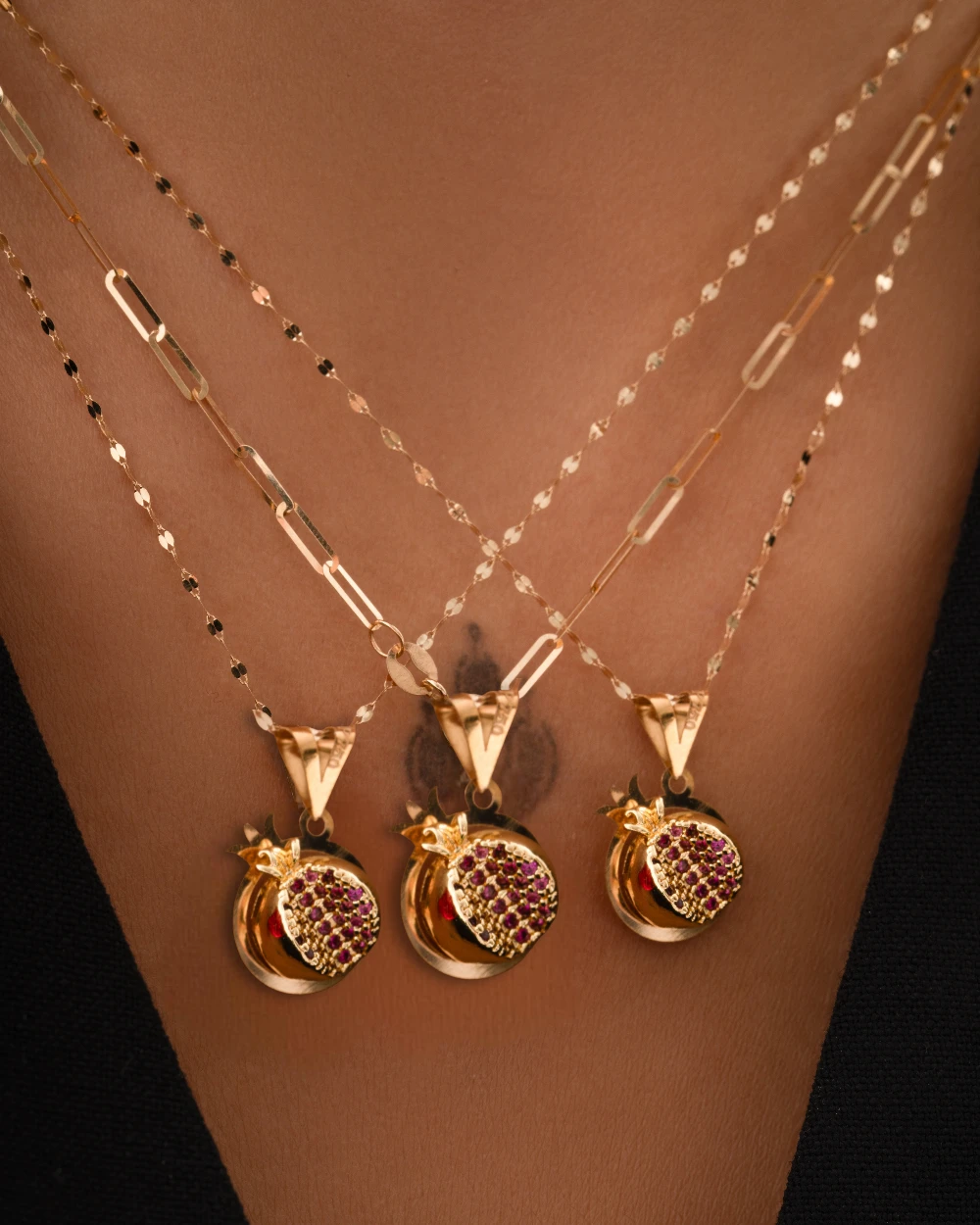 پلاک طلای انار یکی از خاصترین و پرطرفدارترین انتخابها برای هدیه شب یلدا است؛ نمادی ریشهدار از عشق، برکت، سلامتی و صمیمیت که قرنهاست در فرهنگ ایرانی جایگاه ویژهای دارد. این پلاک طلا با طراحی ظریف و الهامگرفته از دانههای انار، انتخابی شیک و معنادار برای کسانی است که به دنبال هدیهای متفاوت و ماندگار هستند.
