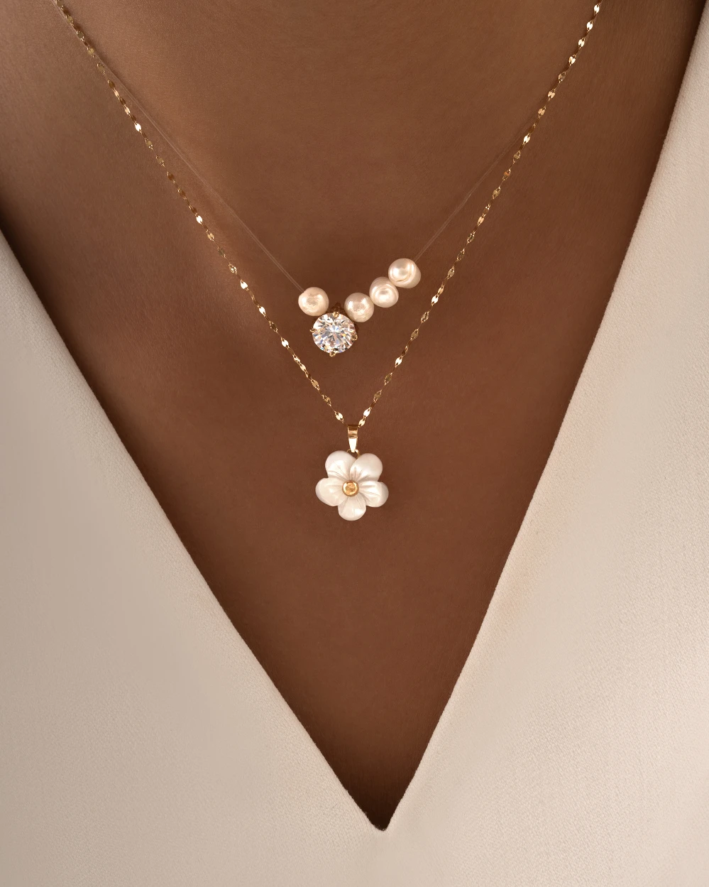همچنین شما میتوانید این گردنبند را به همراه گردنبند شکوفه کد 100149 ،همانطور که در تصویر مشاهده میشود ، ست کنید تا یک مجموعه ظریف، هماهنگ و چشمنواز روی گردن خود داشته باشید. این ترکیب، انتخابی عالی برای علاقهمندان به زیورآلات مینیمال و نمادار است و جلوهای خاص و متفاوت به استایل شما میبخشد.