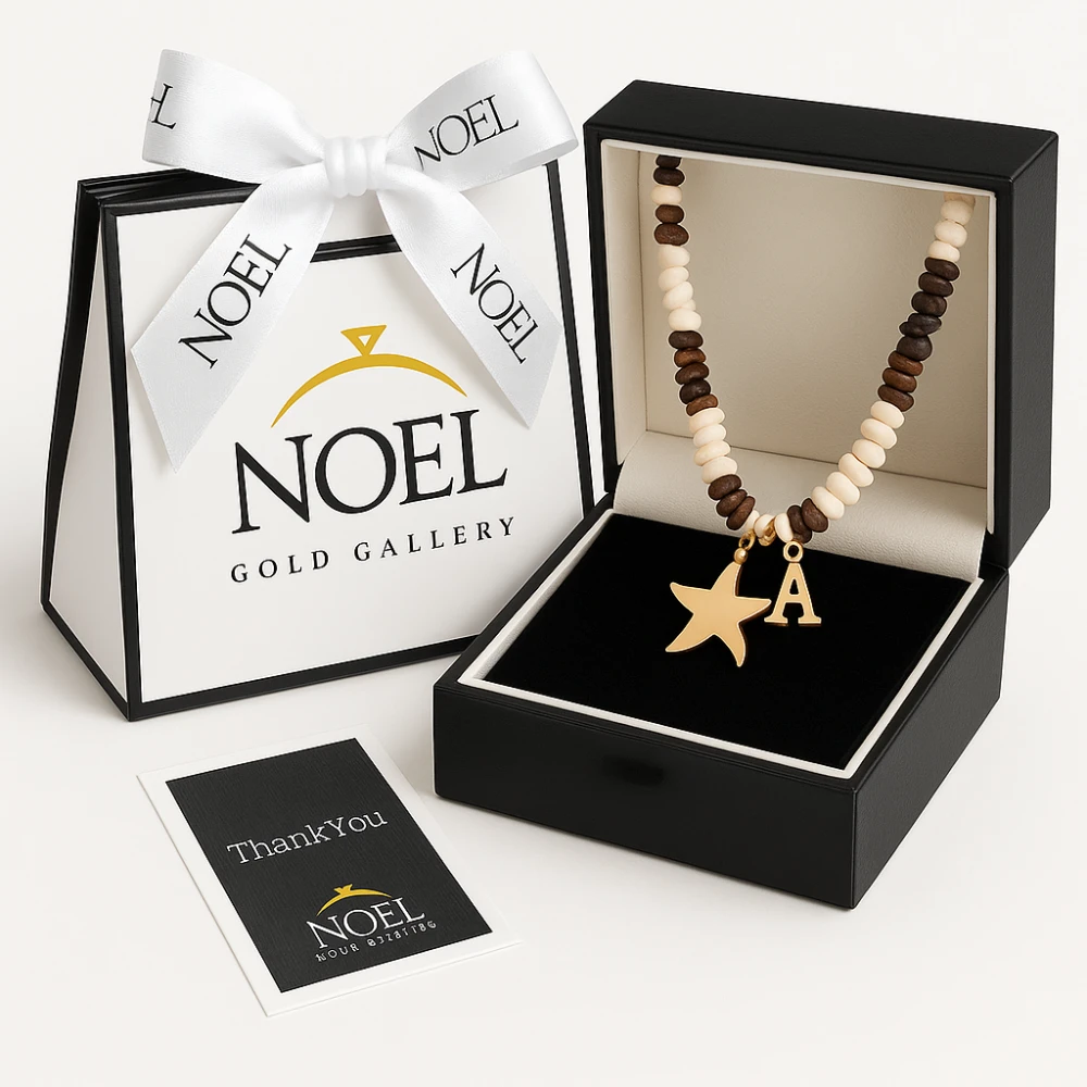 در قسمت مرکزی گردنبند، یک آویز ستاره دریایی طلای ۱۸ عیار در کنار یک حرف اول نام دلخواه شما قرار گرفته است. این گردنبند با ترکیب مهرههای صدفی چیپسی در رنگهای طبیعی سفید صدفی، مشکی و قهوهای ساخته شده و جلوهای کاملاً خاص و منحصربهفرد ایجاد میکند.