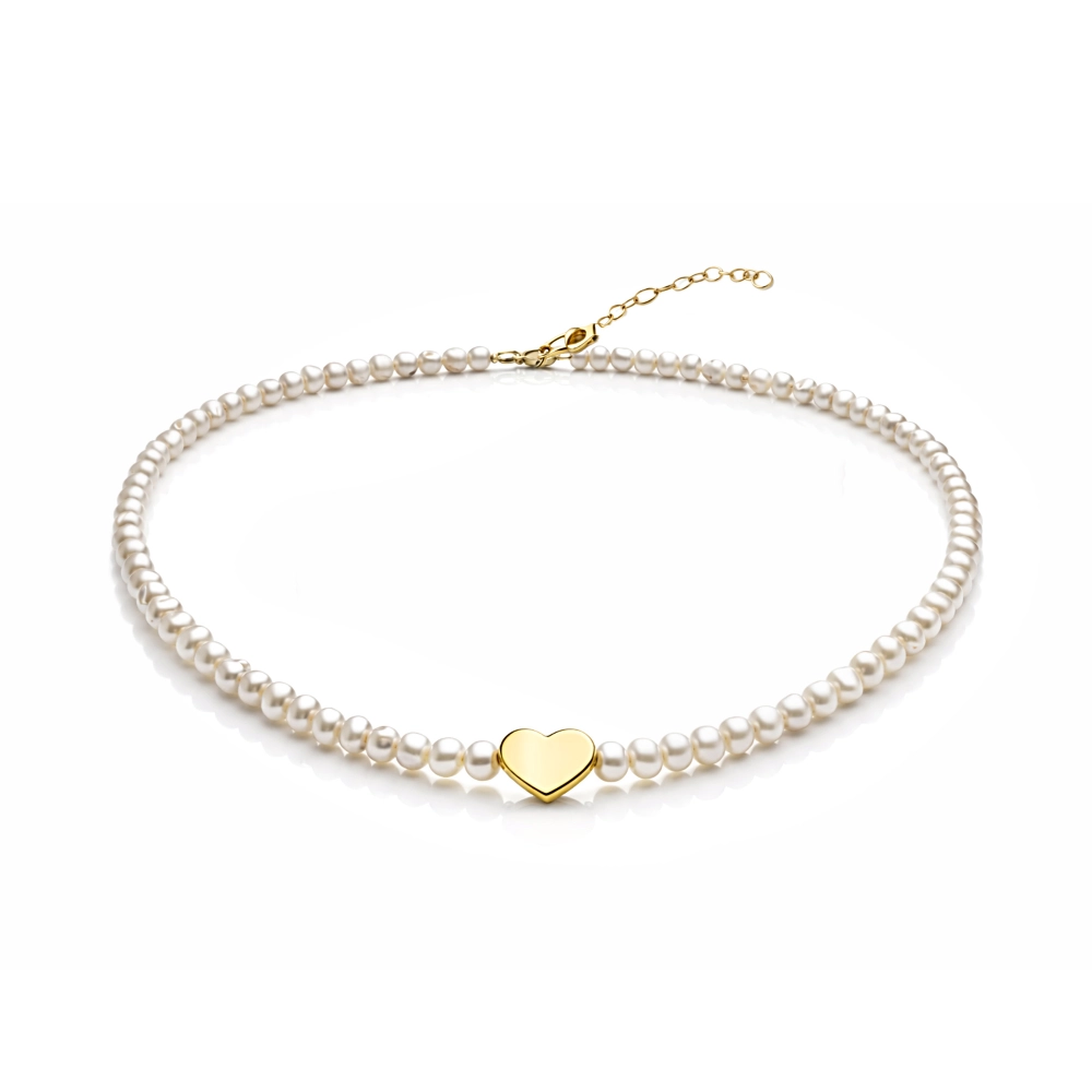 گردنبند قلب سه بعدی طلا با مروارید باروک کد 100310