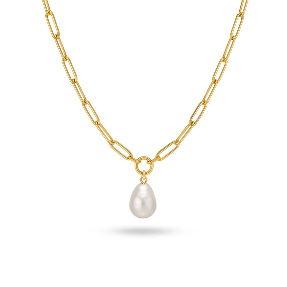 گردنبند هرمس با آویز مروارید باروک کد 100107