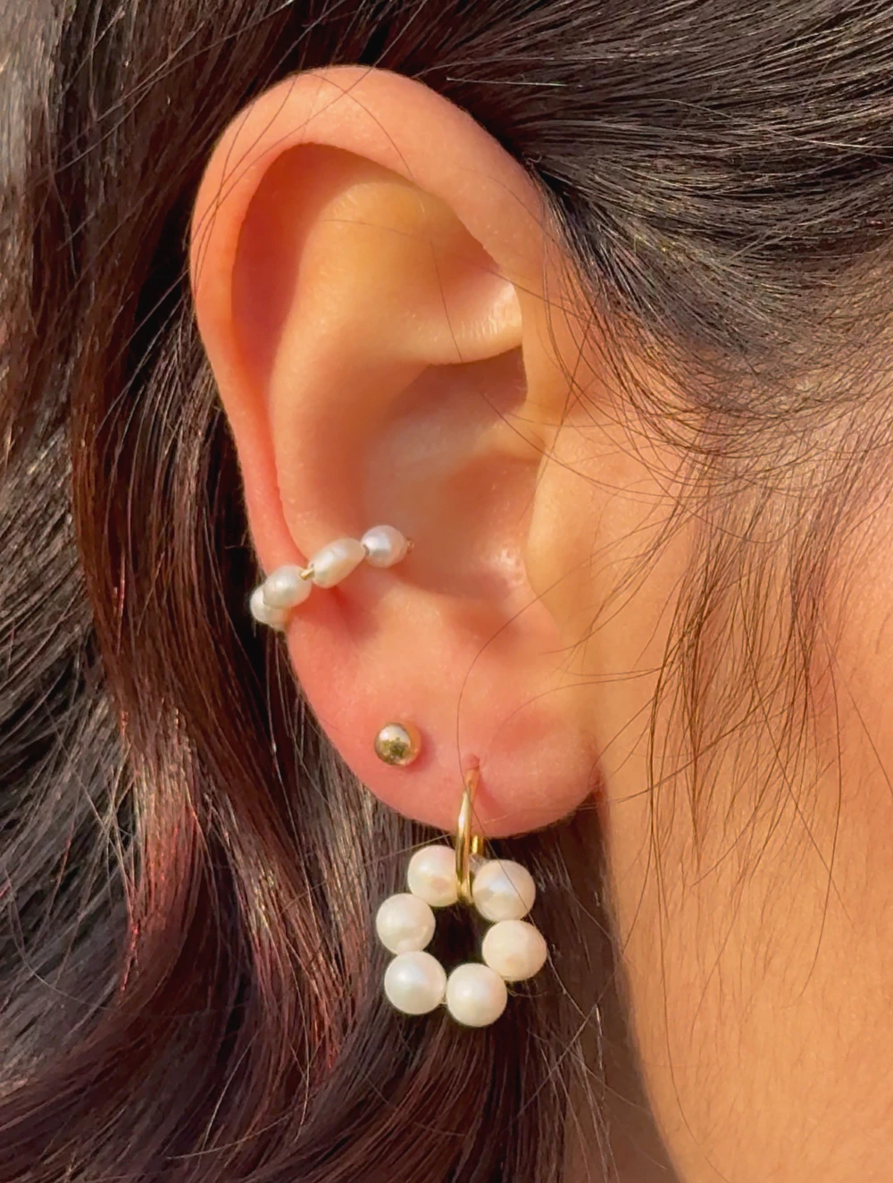 گوشواره حلقهای با آویز مروارید انتخابی ظریف و هوشمندانه برای خانمهاییست که بهدنبال ترکیب سادگی روزمره با جلوهای شیک و زنانه هستند.