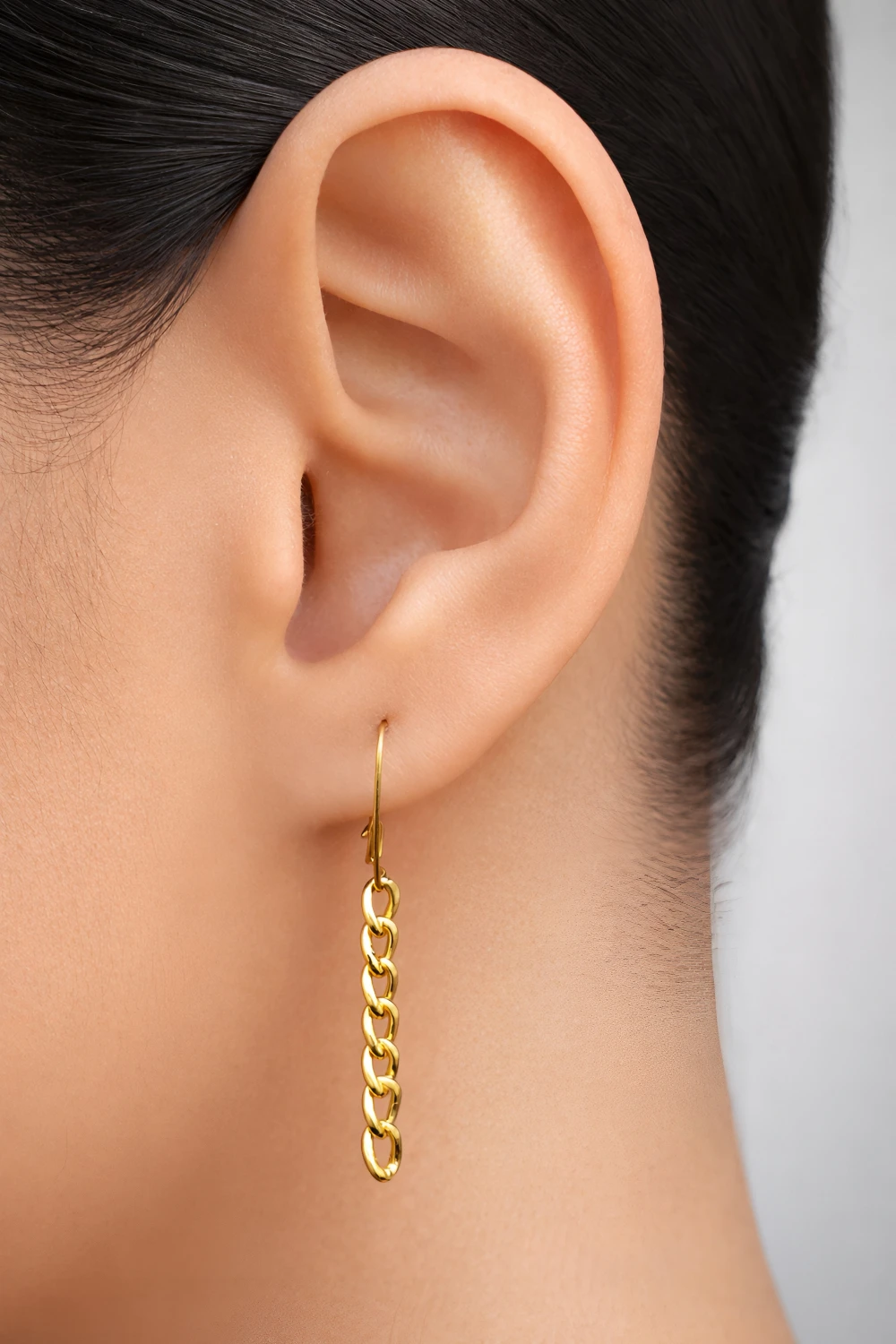 طول بخش آویز زنجیر کارتیه حدود ۳ سانتیمتر است؛ اندازهای ایدهآل که نه بیشازحد بلند است و نه کوتاه، و بهخوبی باعث کشیدهتر دیدهشدن فرم صورت میشود. این گوشواره از طلای ۱۸ عیار ساخته شده و بهصورت جفت عرضه میگردد. انتخابی شیک، باکیفیت و ماندگار برای کسانی که به سادگیِ لوکس اهمیت میدهند